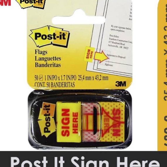Post It 3M terkenal akan kualitasnya dan sudah banyak diakan oleh banyak orang di seluruh dunia. Bertuliskan Sign Here, cocok diakan sebagai penanda lokasi dalam dokumen yang perlu ditandatangan.