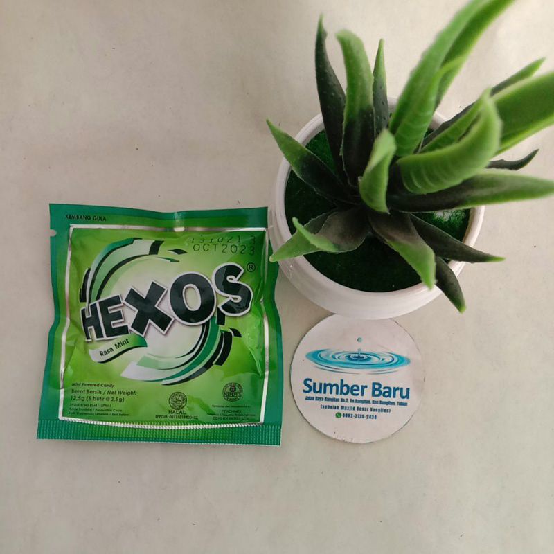Hexos Permen rasa mint yang memberikan sensasi melegakan tenggorokan dan sensasi menyegarkan nafas.