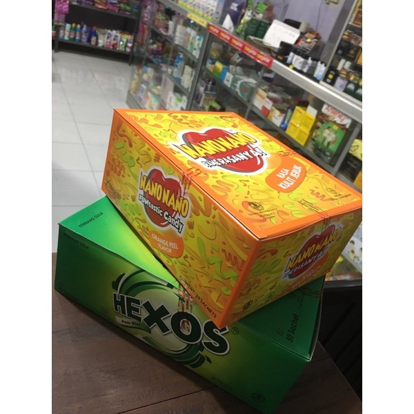 Permen hexos 1 box isi 50 sachet.
