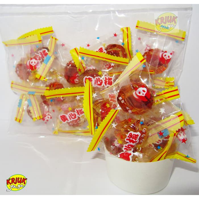 Permen berlapis karamel yg diisi dengan kiamboy merah