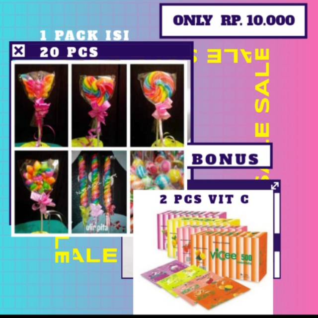 Permen Lolipop 1 pack isi 20pcs berhadiah 1 strip Vit C.
