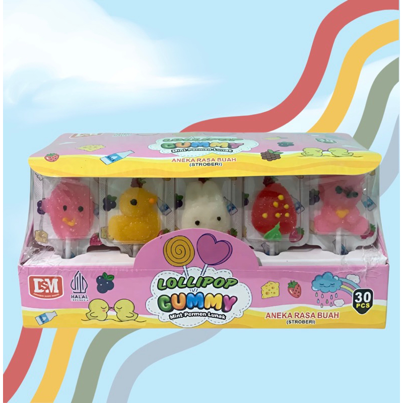 PERMEN LOLLIPOP GUMMY BOX ISI 30 | ANEKA RASA BUAH | PERMEN IMPORT