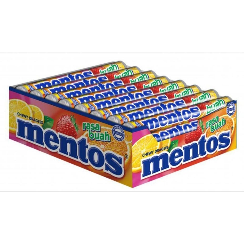 Permen mentos dikemas dalam kemasan roll stick isi 14 butir. mentos Permen Peach Orange Roll 29 gram adalah produk permen dengan varian rasa