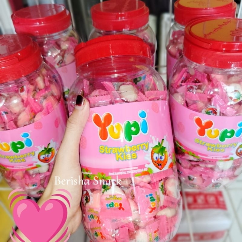 Permen yupi strawberry kiss kemasan toples dengan berat 300gr