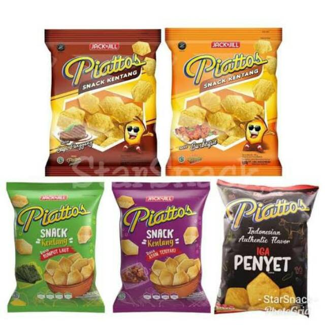 Piattos merupakan makanan ringan kentang dengan bentuk hexagonal (segi 6) yang terbuat dari kentang berkualitas, kaya rasa, dengan tekstur yang garing dan renyah. Tersedia dalam kemasan 11gr, 35gr dan 80gr.