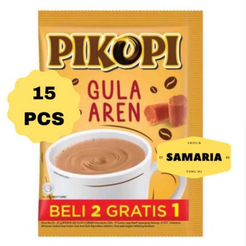 S Deskripsi Produk Pikopi Gula Aren, kopi instant dengan rasa gula aren yang nikmat Cara Penggunaan : Tuangkan 1 sachet pikopi gula aren ke dalam gelas, tambahkan air panas 150ml, aduk hingga merata dan siap untuk dinikmati Komposisi : Gula, Krimer nabati (mengandung susu), kopi instant (8.48%), gula aren (1.27%), kakao bubuk, perisa sintetik aren (mengandung antioksidan dl-alpha-tokoferol)