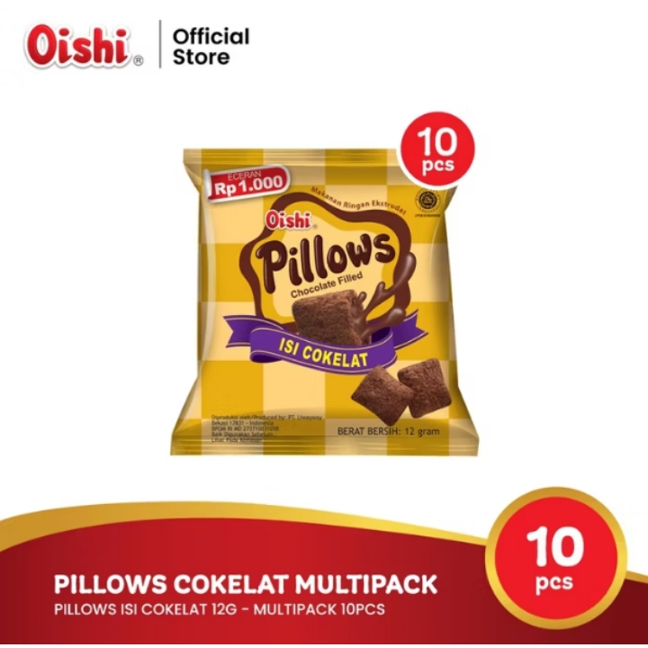 PILLOW SNACK RASA CHOCOLATE / COKLAT OISHI 1 RENCENG (10 x 12 gr)