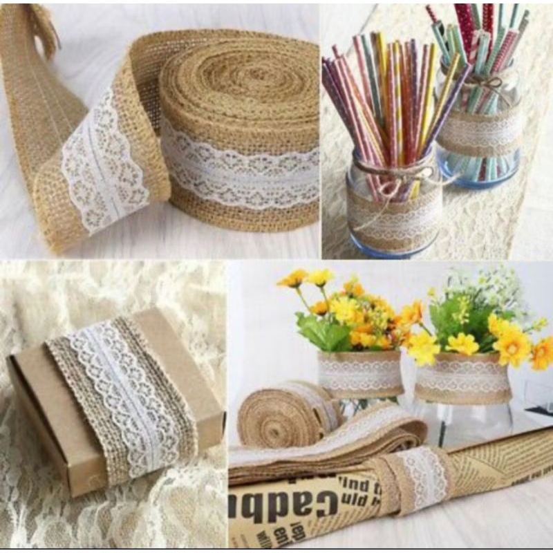 PITA GONI COKLAT RENDA PUTIH JUTE GONI RENDA BURLAP JUTE