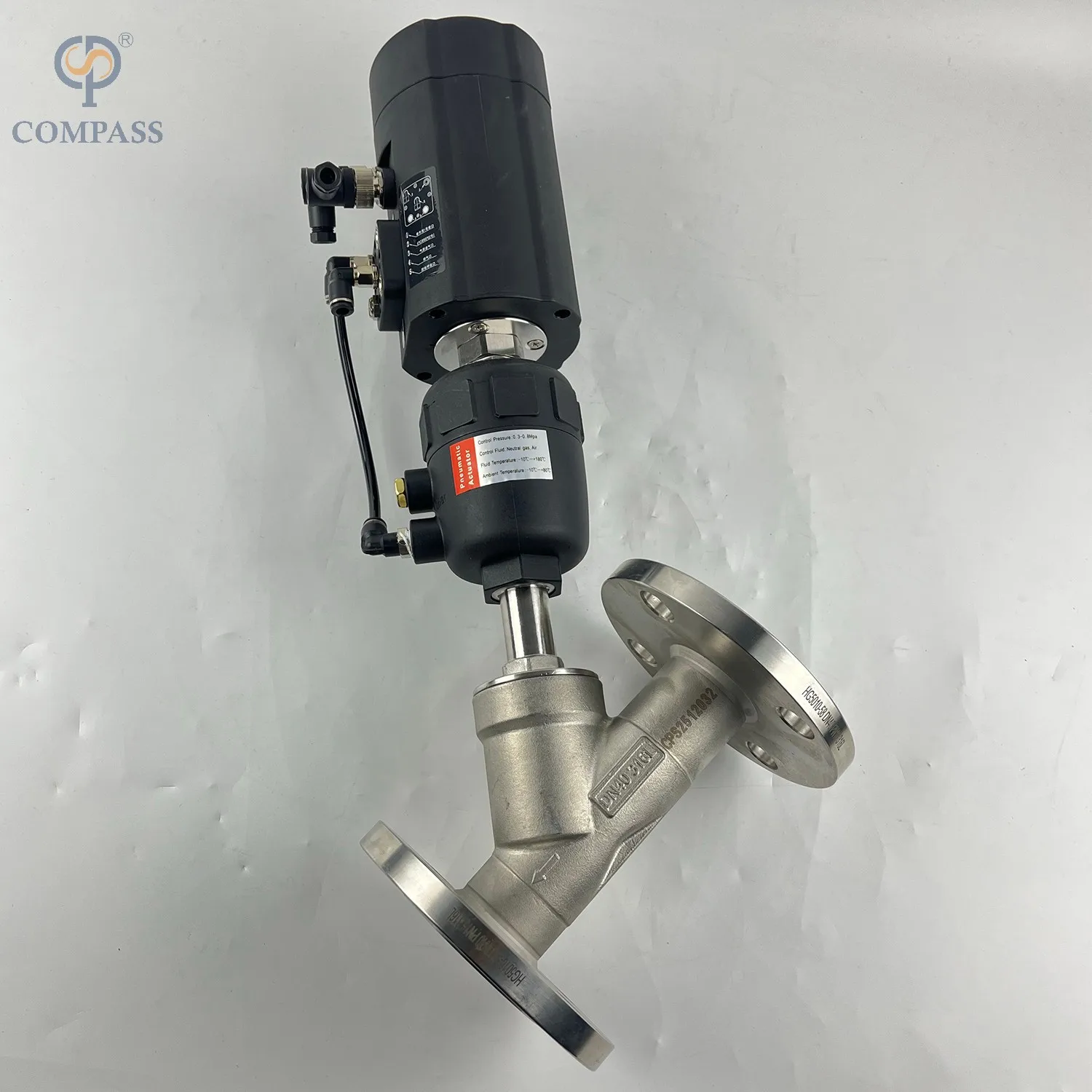 PLASTIC PNEUMATIC FLANGE ANGLE SEAT VALVE WITHCONTROL HEAD