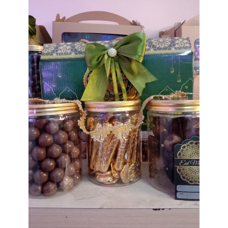 Hampers Coklat platinum terdiri Dari 3toples, Maltitos Delfi, sticky gold Coklat,Kurma Coklat. toples ukuran 850 gr