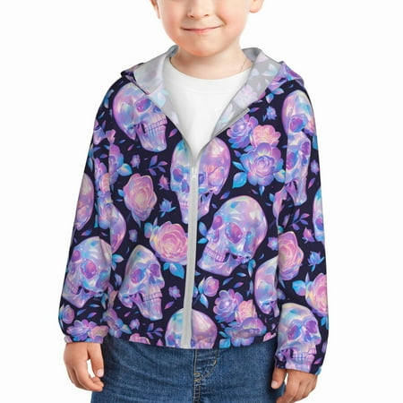Goofa crystal Skull flower Printed Kids Zip-Up Hoodie Girls Boys UPF50+ Sun Protection Jacket Hooded Cooling Shirt-5 Years