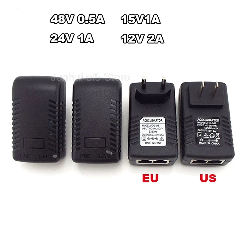 POE-инжектор Ethernet-адаптер питания для видеонаблюдения 48 В 0,5 А 15 В 1 А 12 В 2 А для IP-камеры POE-переключатель Источник питания Опция ЕС/США B5