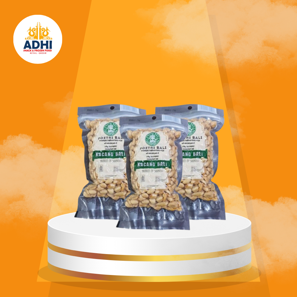 "Kacang Poetri Bali menggunakan bahan yang berkualitas menggunakan kacang super,minyak kelapa, dan rempah-rempah sehingga menjadi makanan yang sehat dan cocok untuk camilan di siang hari ataupun dimalam hari. Cocok untuk teman santai dan cemilan bersama keluarga,