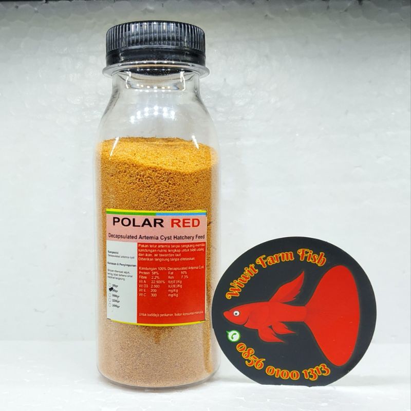 Artemia shell free Polar Red adalah pakan telur artemia tanpa cangkang yang memiliki kandungan nutrisi lengkap untuk bibit udang dan ikan baik air tawar maupun air laut.