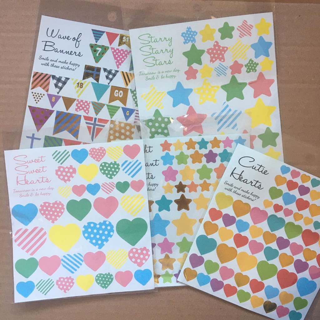 Berbagai macam bentuk sticker, cocok untuk dekor polaroid, bullet journal, maupun polcos