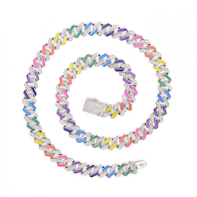 POMOiii в стиле хип-хоп, 12 мм, красочная застежка для капельницы, кубинская цепочка, ожерелье для пары с покрытием из алмазного сплава, ожерелье в стиле хип-хоп