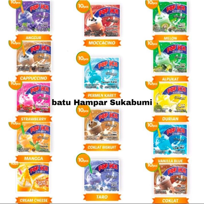 pop ice minuman serbuk mengandumg susu dengan berbagai macam varian rasa 1 renceng isi 10 pcs