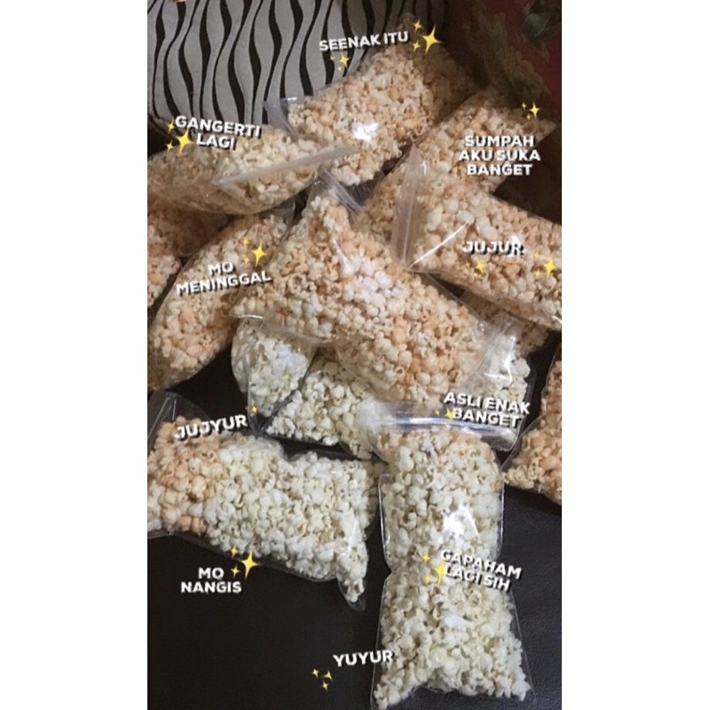 popcorn renyah gurih tanpa pengawet, tanpa pewarna, aman untuk anak2. tersedia rasa jagung bakar dan sapi panggang