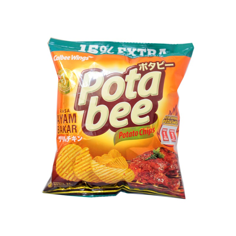 Kentang merupakan jenis umbi-umbian yang termasuk ke dalam sayuran. Kentang biasanya diolah menjadi makanan yang banyak mengandung karbohidrat dan mengenyangkan. Pada perkembangannya, kentang diolah menjadi camilan berbentuk keripik yang renyah dan sangat populer. Salah satu camilan dengan bahan dasar kentang adalah Potabee Potato Chips Ayam Bakar 35g. Camilan kentang persembahan Wings ini memiliki rasa khas kentang asli meski diberi sedikit rasa ayam bakar, rasa kentangnya masih benar-benar terasa. Tekstur keripik yang tebal dan renyah membuat rasa kentangnya utuh dan rasa ayam bakarnya menyempurnakan rasa yang gurih dan lezat. Hadir dalam kemasan plastik premium yang benar-benar menjaga rasa dan praktis dibawa ke mana saja sebagai camilan santai bersama teman.