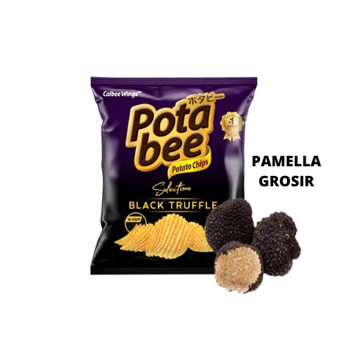 Potabee Selections Black Truffle adalah keripik kentang pertama di Indonesia dengan rasa dan aroma jamur truffle hitam yang mewah, dibuat dengan V-Cut technology dan bertabur bits truffle asli.