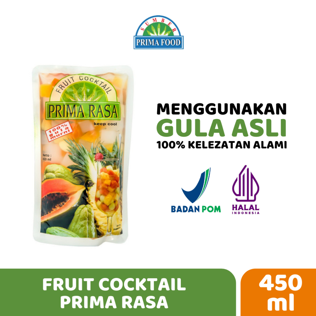Fruit Cocktail Prima Rasa terdiri dari buah-buahan tropis dan nata de coco yang segar, sehat, kaya serat dan kaya vitamin. Cocok untuk dikonsumsi sebagai hidangan pencuci mulut, tajil setelah berpuasa dan snack sehat sehari-hari.