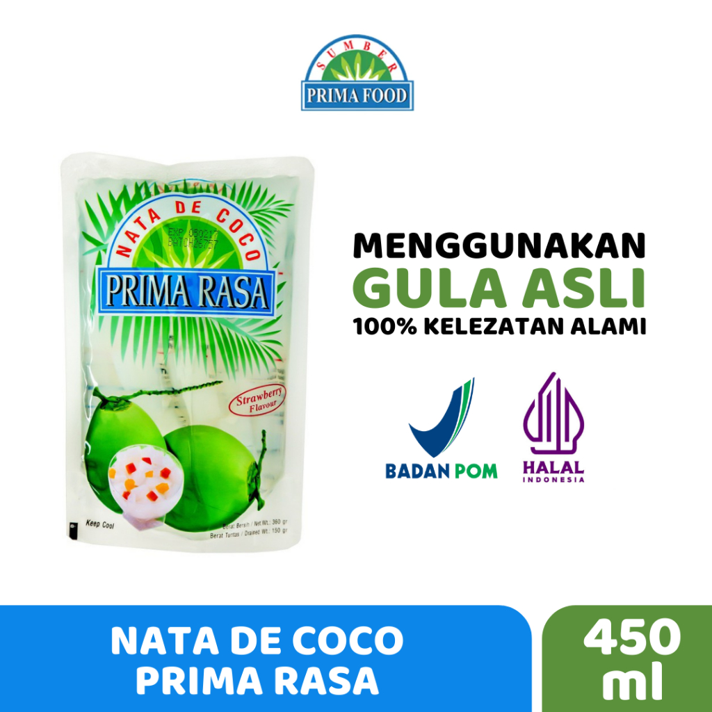 Nata de Coco Prima Rasa terbuat dari air kelapa. Sangat dianjurkan untuk dikonsumsi karena sehat dan kaya serat. Cocok untuk dikonsumsi dalam keadaan dingin untuk pencuci mulut, tajil setelah berpuasa maupun snack sehat sehari-hari.