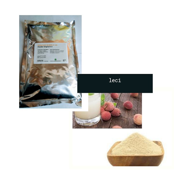 merupakan powder leci dengan warna putih.