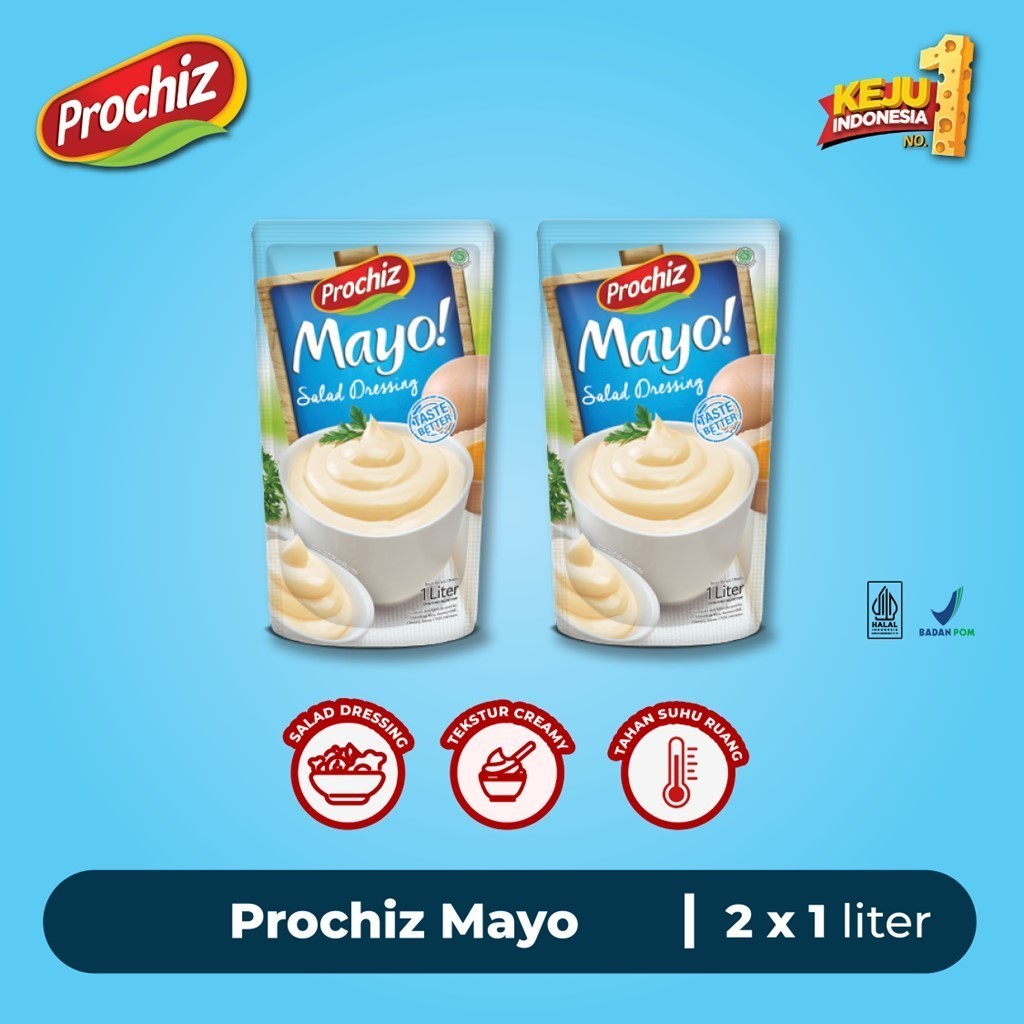 PROCHIZ Mayo 12p x 1L dapat digunakan sebagai salad dressing, pizza, risoles, maupun makanan lainnya. BPOM MD 256210017080