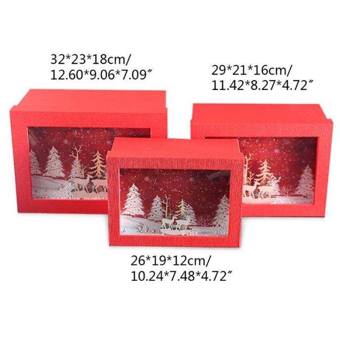 Christmas 3D Wooden Carving Paper Gift Box Forest Deer Frame Lid Packaging Case