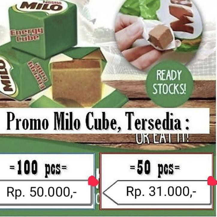 Barang Kami READY STOCK, bisa langsung order.. atau silahkan chat untuk memastikan warna / ukuran / variasi yang di inginkan. NESTLE MILO CUBE 100 PCS READY Selama Stok Tersedia...!!! Kemasan 1 Pack isi 100 pcs Berat Bersih 275gr >>> 1kg muat 4 pack