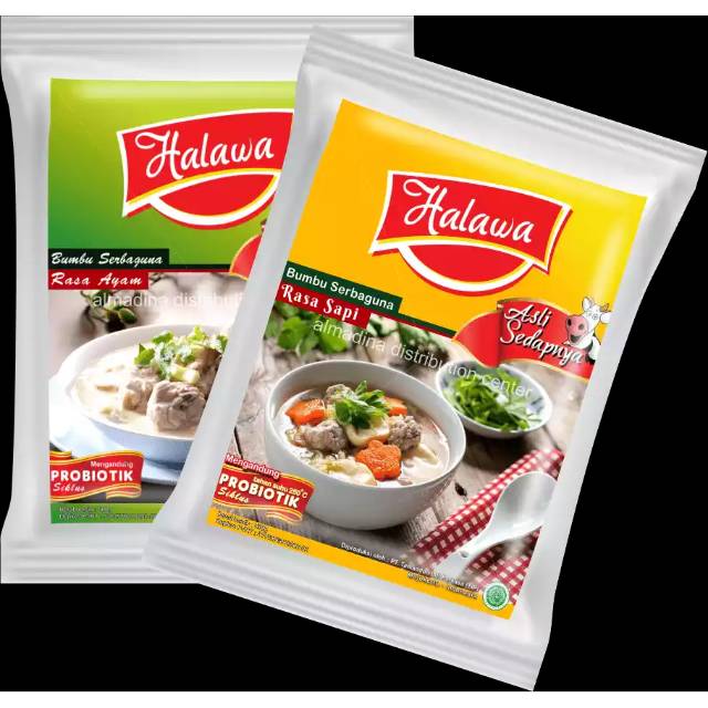 .Kami menjual produk penyedap rasa Halawa 500gr..dijamin exp date pasti fresh produk..tersedia rasa sapi dan ayam..tapi mohon maaf saat ini hanya tersedia rasa ayam,yg sapi belum bisa produksi.