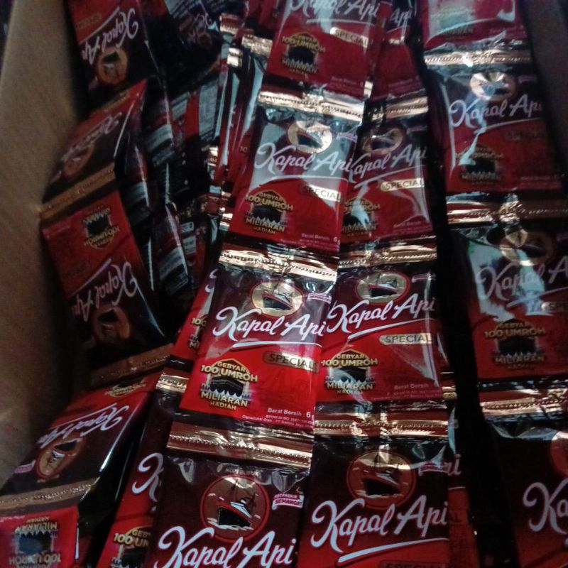 Kopi Kapal Api terbuat dari biji kopi pilihan dan diproses dengan mesin paling modern yang menghasilkan kopi berkualitas tinggi dengan Aroma terbaik dan Rasa yang enak. Kapal Api Special Mix Dibuat dari Biji kopi pilihan yang diolah dengan mesin paling modern dan campuran gula murni. Menjadikannya paduan spesial dari kopi dan gula. Kemasan Praktisnya, membuat kopi Anda siap seduh dengan aroma kopi senikmat selera pilihan. Mulai hari Anda dengan secangkir semangat untuk Indonesia dengan Kopi Kapal Api.
