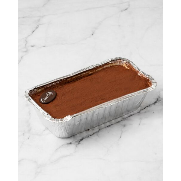 Terbuat dari telor kuning, gula, keju mascarpone, dan whipped cream. Dalam isi ada biscuit lady finger dari Italia yang di celup ke campuran kopi menggunakan special secret blend kopi Oma Elly, dan juga Kahlua asli.
