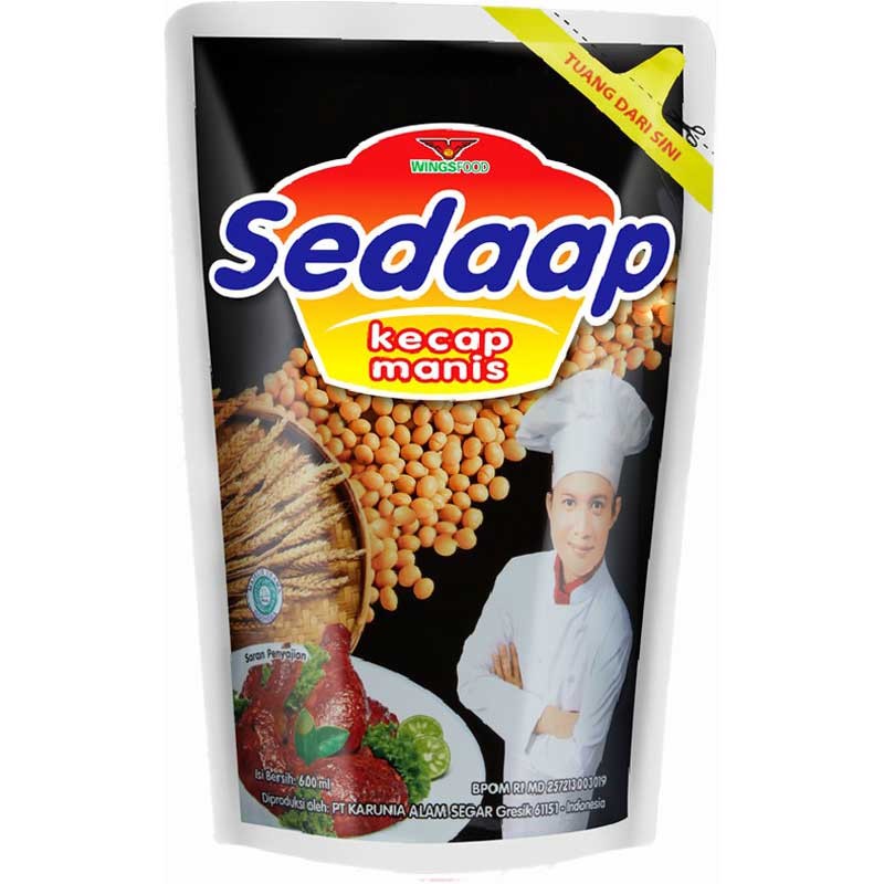 Sedaap Kecap Manis Pouch 550ml Dalam banyak masyarakat dunia, rasa manis memang menjadi salah satu rasa yang sangat dicintai hingga terbawa mimpi. Dalam setiap santapannya, kecap manis Sedaap hadir memberikan sensasi manis yang nikmat. Begitu pula di Indonesia. Sebagian besar dari kita menjadikan kecap manis sebagai bagian tak terpisahkan dari budaya makan sehari-hari. Dan mungkin Anda adalah salah satunya. Dari tradisi masak nusantara dan budaya makan dengan kecap manis inilah yang membuat kecap manis Sedaap yang menghadirkan kecap manis yang akan menemani makan pagi, siang, dan malam Anda bersama orang-orang kesayangan dengan sensasi manis yang istimewa. Sedaap Kecap Manis Pouch 550ml merupakan kecap yang terbuat dari bahan-bahan eksotis pilihan yang hanya diproduksi di pulau Jawa, yaitu gula aren, kacang kedelai, dan bahan berkualitas lainnya. Kecap manis Sedaap diproses secara modern dan higienis untuk menghasilkan kecap dengan kekentalan dan kemurnian rasa sehingga memberikan cita rasa istimewa pada setiap masakan. Rasa manis kecap manis Sedaap yang alami diperoleh dari gula aren yang dikeringkan menggunakan panas sinar matahari, menambah aroma dan memberi rasa manis istimewa pada berbagai masakan.