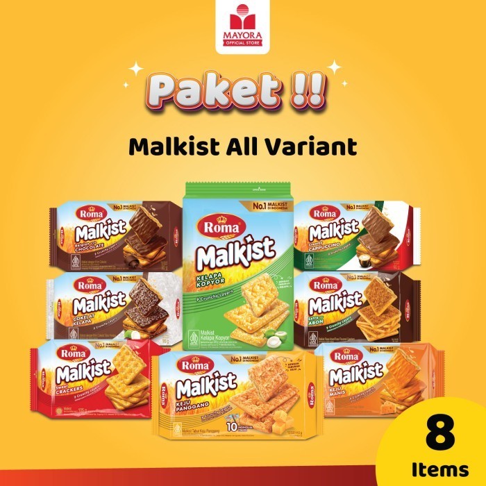 Malkist all varian, paket jenis aneka rasa dari Roma malkist