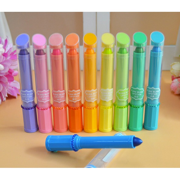 Stabilo Bling Bling berbentuk Lipstik ini modelnya lucu banget, kamu hanya perlu memutar bagian bawah stabio untuk Warna cerah, desain lucu.
