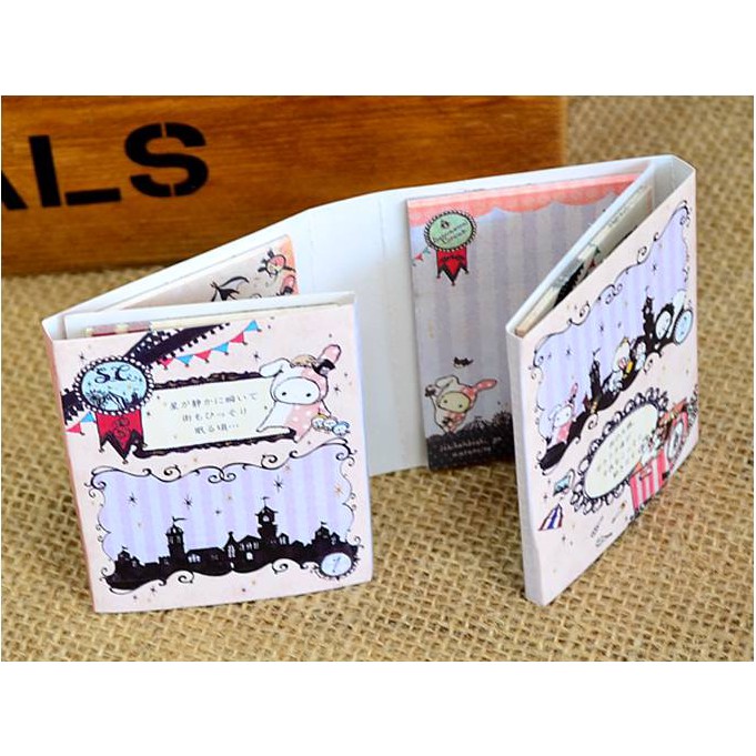 Stick Note Sentimental Circus lipat 6 ini desainnya lucu banget. Buku memo ini terdiri dari 6 memo kecil berukuran 5,5x8cm, dengan masing-masing memo terdiri dari 19 lembar kertas memo.