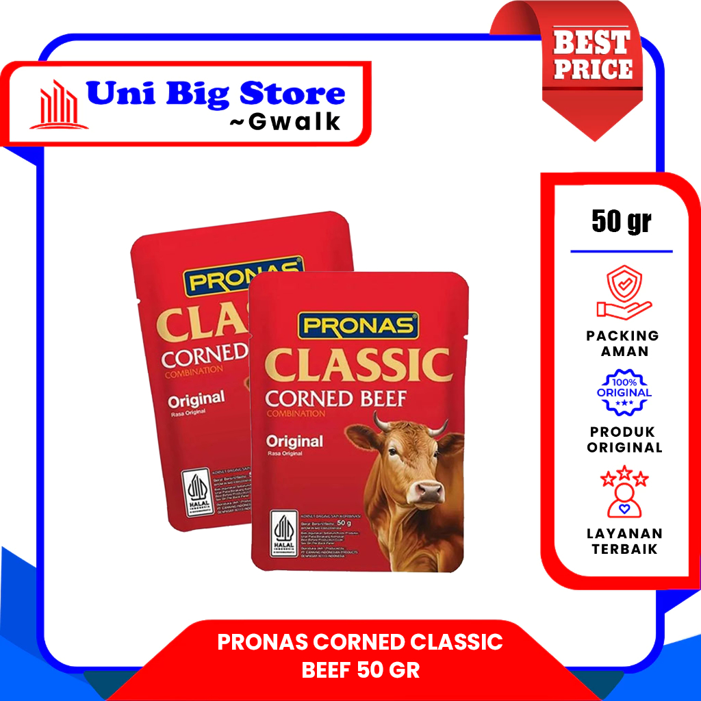 PRONAS CLASSIC CORNED BEEF ORIGINAL KORNET DAGING SAPI SACHET - 50 gr