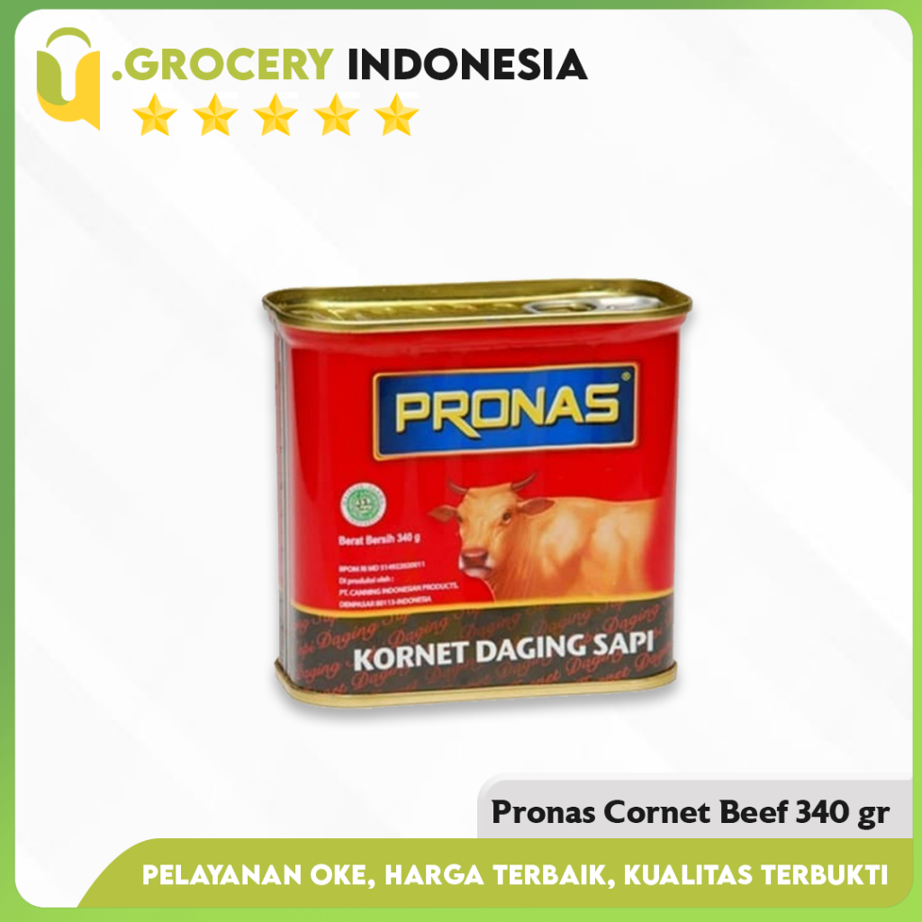 Note : + Chat terlebih dahulu untuk Cek stock sebelum order + Jangan lupa masukan keranjang / wishlist supaya produk tidak hilang dari pencarian kamu + Jika ada yang ingin ditanyakan, bisa langsung klik tombol pesan Nama Produk :Pronas Corned Beef Berat Produk :340gr Pronas Kornet Sapi Regular 340 g dalam kemasan kaleng EOE Keunggulan : - Kornet Sapi Pronas terbuat dari daging yang berkualitas tinggi, meyajikan rasa yang sempurna dari generasi ke generasi - Kornet Sapi Pronas sangat cocok untuk menu makan pagi dan kudapan (snack) Detail : - Kaya Protein - Bisa langsung di makan, praktis dan higienis - Masukkan ke dalam wadah kedap udara setelah di buka dan disimpan dalam lemari es Komposisi : Protein nabati, daging sapi, air, terigu,garam, gula, bumbu-bumbu, penstabil natrium tripolifosfat, penguat rasa, MSG, antioksidan, pengawet natrium nitrat BPOM : MD 539522024004 Terima kasih Selamat berbelanja di u.grocery indonesia >.
