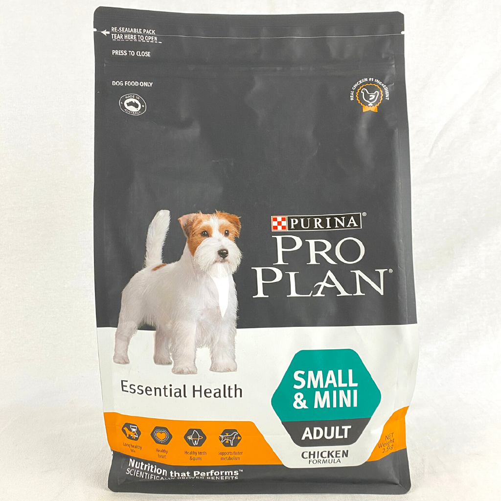 PRO PLAN Small and Mini Adult ESSENTIAL HEALTH is a complete and balanced dogfood for small and mini size dogs. Your dog might be smaller than others, buttheir needs are just as complex, so to give your small dog the right nutrientsfor their size, choose PRO PLAN Small Mini Adult ESSENTIAL HEALTH.It's a complete and balanced small breed dog food that keeps your adult dog ingood condition through tasty and balanced meals. It contains a combination ofspecifically selected nutrients at appropriate levels for your dog's size,including a prebiotic proven to improve intestinal health. ESSENTIAL HEALTHhelps take care of your dog's heart, teeth and joints, as well as improvingtheir intestinal health through prebiotics. For a healthy, energetic dog thatloves to share life's adventures with you, give them PRO PLAN ESSENTIAL HEALTH.• Real Chicken #1 ingredient.• Long Healthy Life• Healthy Heart• Healthy teeth and gums• Support faster metabolism• Inulin, prebiotic from chicory, proven to balance intestinal micro flora• Scientifically proven antioxidants for immune defense• No added colours, flavours and preservatives