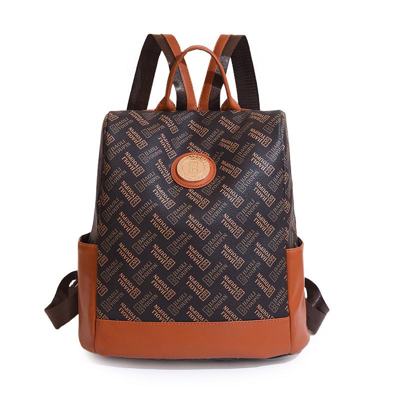 PU принт рюкзак женский большой емкости компьютерная сумка дорожная сумка школьный портфель студент темно-коричневого