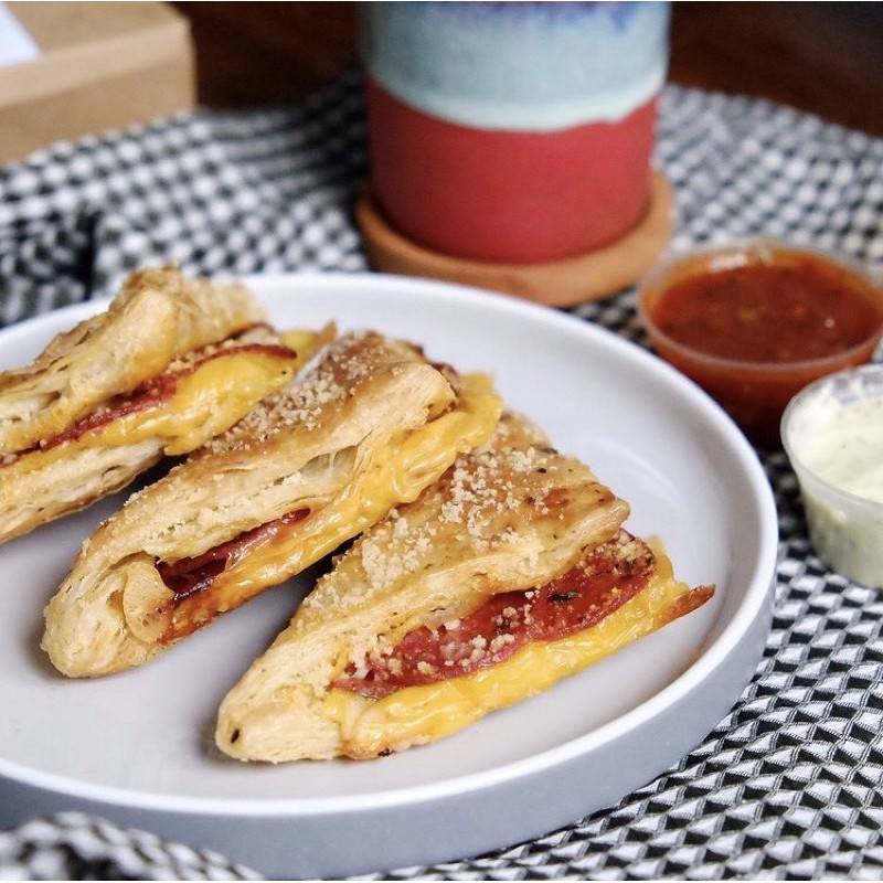 Puff Pastry Pocket dibuat menggunakan bahan-bahan fresh, berkualitas, dan HALAL : Tepung, Air, Mentega, Gula, Garam.