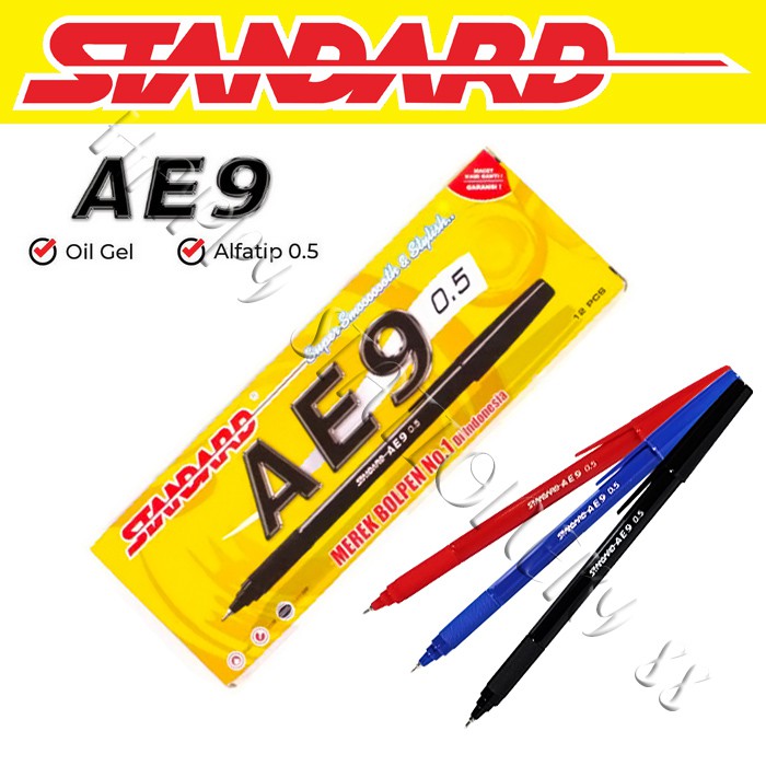 PULPEN BOLPEN BALLPOINT STANDARD AE9 - 12PCS PACK