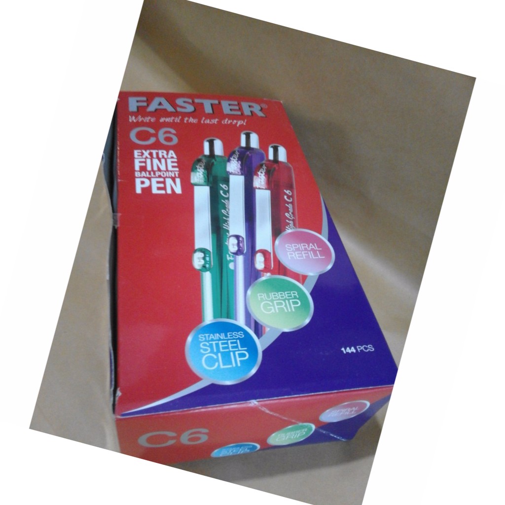 Jual ballpen FASTER C-6 (hitam & biru ksg) per lusin.