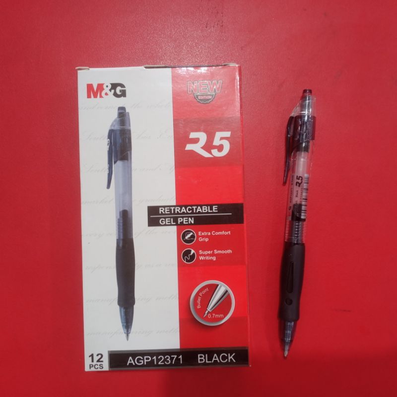 PULPEN GEL M&G R5 0.7MM HITAM 12PCS