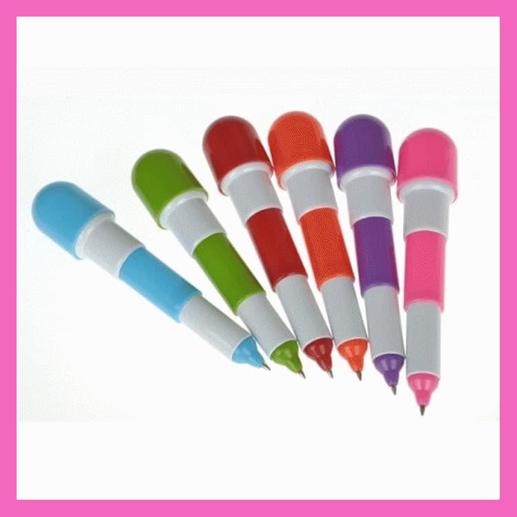 Pulpen unik berbentuk kapsul. Dibuka tutupnya, lalu ditarik, dan, voila....! kapsul akan menjadi pulpen. Hadiah unik buat siapa saja..