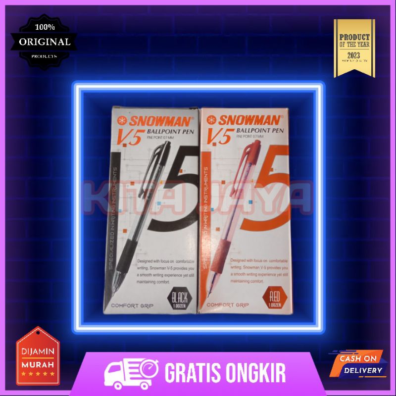 - Keterangan: Retracable (Click) Pen Snowman V5 dengan tinta Semi Gel yang membuatnya tidak membeku pada poin pen dan mengakibatkan macet selama penggunaan, goresan tinta tebal denan poin 0.7 mm dengan grip yang lebih empuk dan nyama