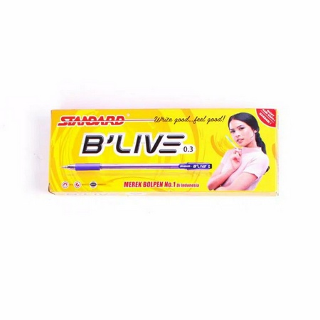 Pulpen Standard Blive 0.3 yang berbentuk stick pen, memiliki Body warna yang cantik & Menarik, menggunakan Tinta Oil Gel, dengan Rubber Grip yang memberi kenyamanan dalam menullis, juga disertai dengan tip point 0.3 mm, Tersedia Tinta warna Hitam