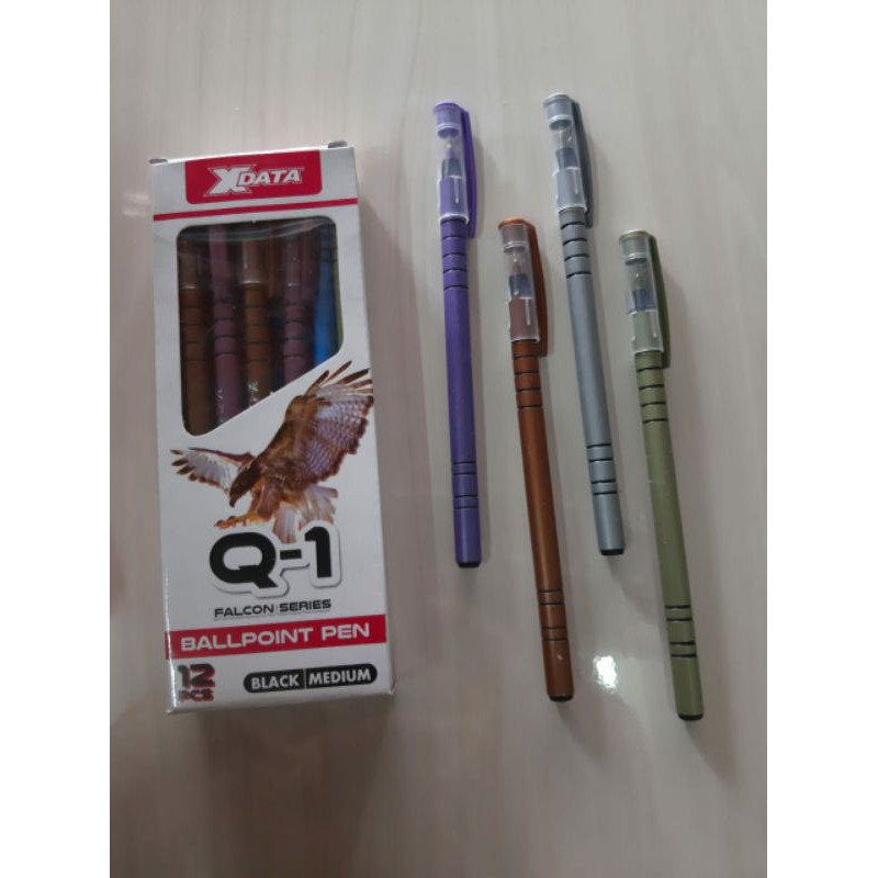 pulpen tinta hitam cover warna warni, satu pak isi 12pcs
