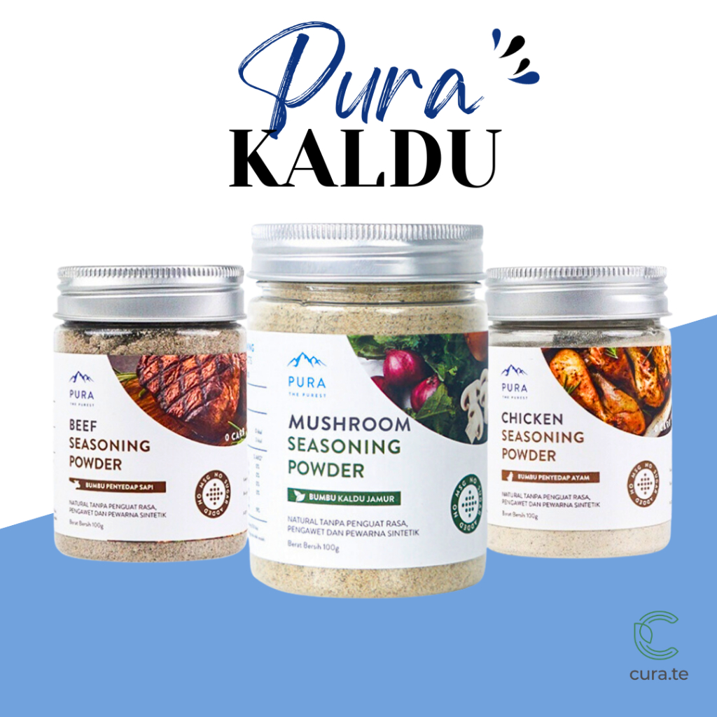 Pura Seasoning adalah bumbu natural pertama di Indonesia yang menggunakan Garam Himalaya, dengan kandungan 0 gula, non MSG, tanpa bahan pengawet, dan BEBAS GLUTEN. Pura hanya menggunakan bahan pilihan terbaik, berkualitas, fresh serta diproses secara modern dan higienis. Bumbu kaldu terbaik untuk Mpasi dan keluarga. Cocok untuk meningkatkan aroma dan melezatkan segala jenis masakan seperti taburan pada bubur, sup, tumisan dan panggang.